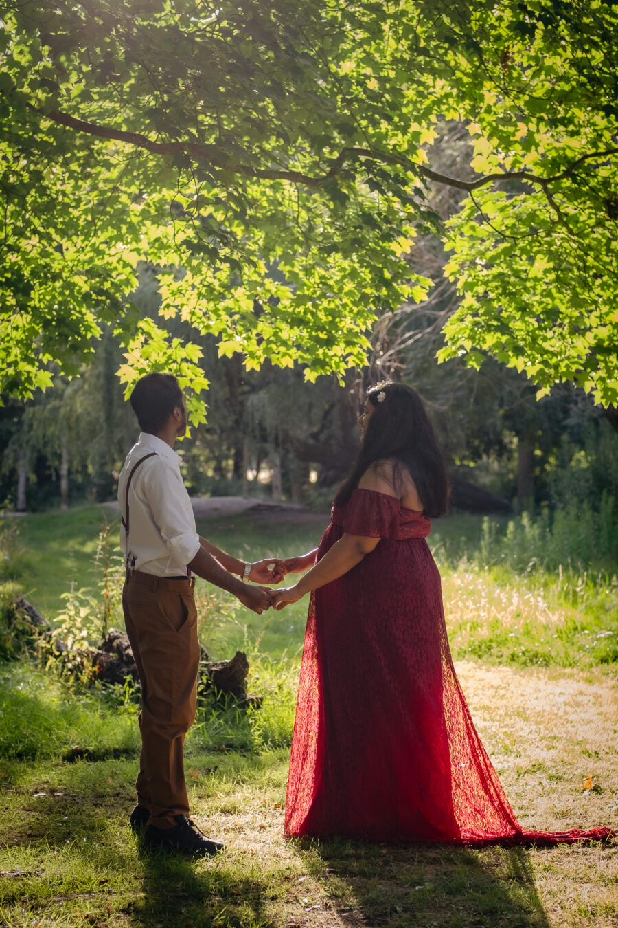 All of my maternity photo sessions take place outdoors in beautiful London parks and green spaces. There’s something truly magical about blending the natural beauty of a park or garden with your pregnancy glow. London offers a variety of picturesque locations—from the open spaces of Hyde Park to the tranquil paths of Richmond Park, there’s a perfect spot waiting for you.